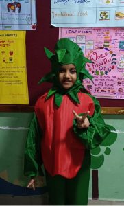 The Fancy Dress segment added excitement to the celebration. Students dressed up as fruits, vegetables, and other nutritious food items, confidently speaking a few lines about their importance. This activity boosted self-confidence and communication skills.