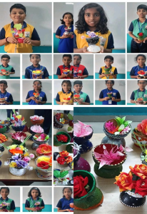 Students showcased innovation by transforming coconut shells into attractive flower vases. This eco-friendly craft activity not only enhanced creativity and fine motor skills but also created awareness about sustainability and the importance of reusing natural resources. Children learned that everyday materials can be turned into beautiful creations with imagination and effort.